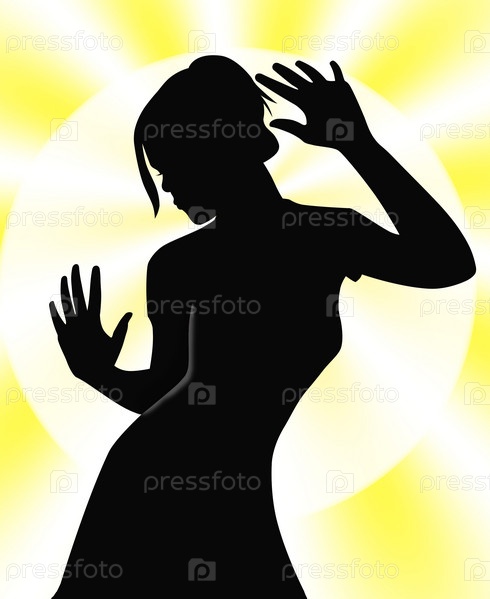 Девушка танцует на желтом фоне