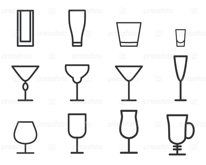 Набор бокалов на белом фоне. Вектор
