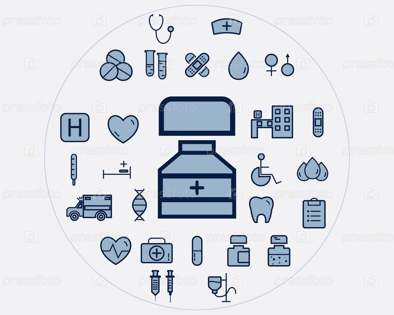 Набор плоских медицинских иконок