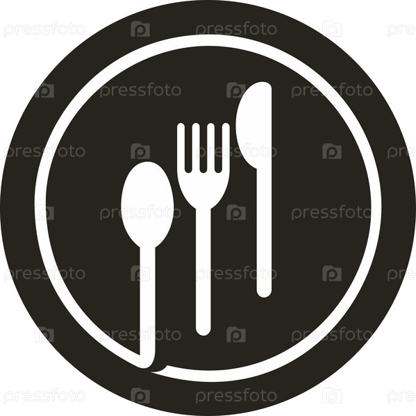 Векторная иллюстрация тарелки с вилкой, ножом и ложкой