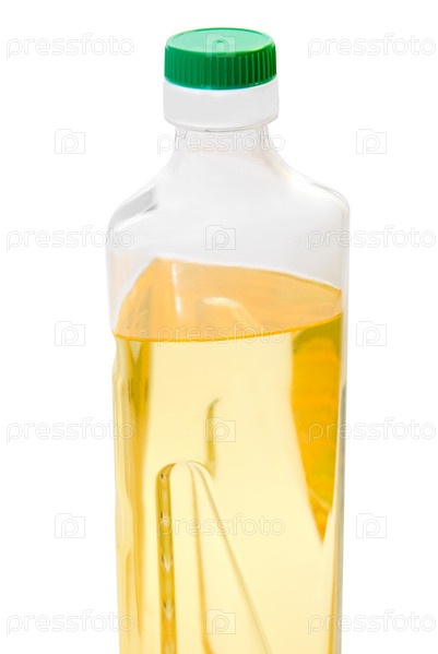 Бутылка с подсолнечным маслом на белом фоне