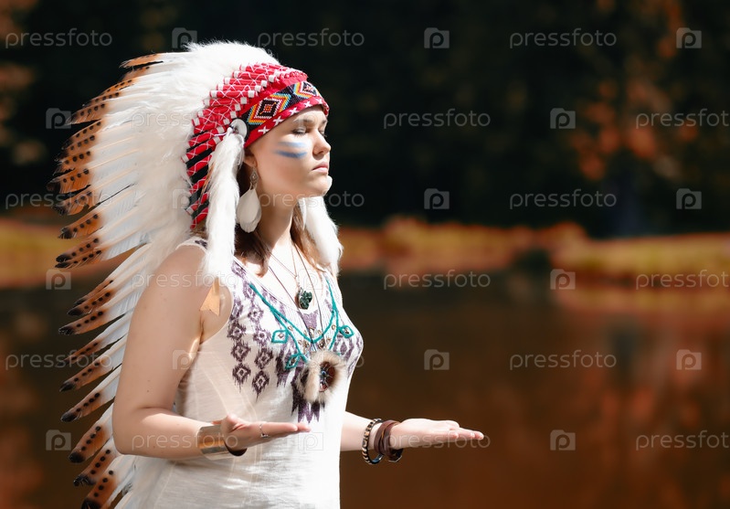 Молодая женщина в головной убор американских индейцев