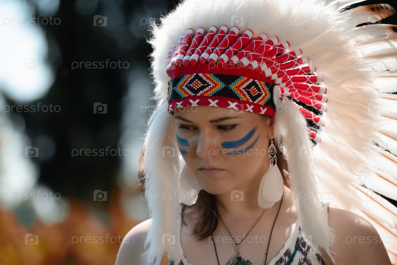Молодая женщина в головном уборе американских индейцев