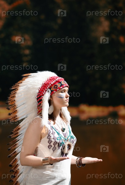 Молодая женщина в головном уборе американских индейцев