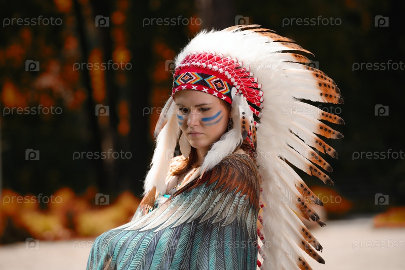 Молодая женщина в головном уборе американских индейцев