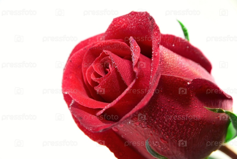 Бутон красной розы на белом фоне