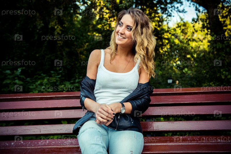 Девушка позирует в кожаной куртке