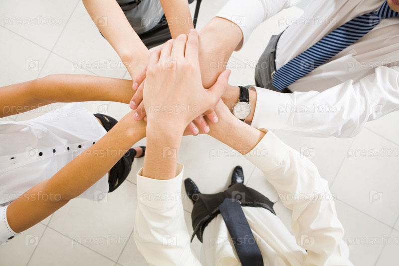 Изображение деловых людей с руками друг на друга, символизирующих поддержку и власть