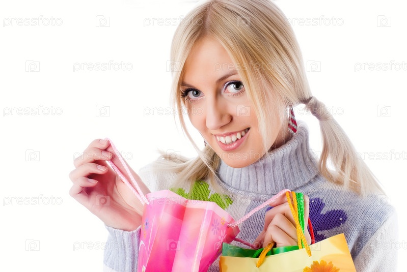 Довольно улыбается девушка с покупками