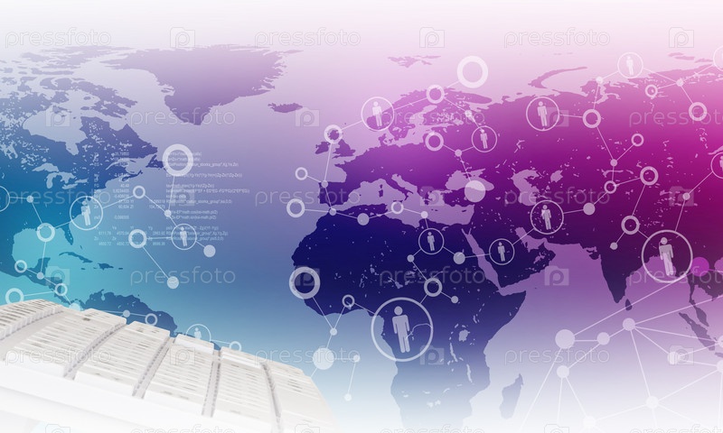 Клавиатура на фоне карты фиолетовый мира