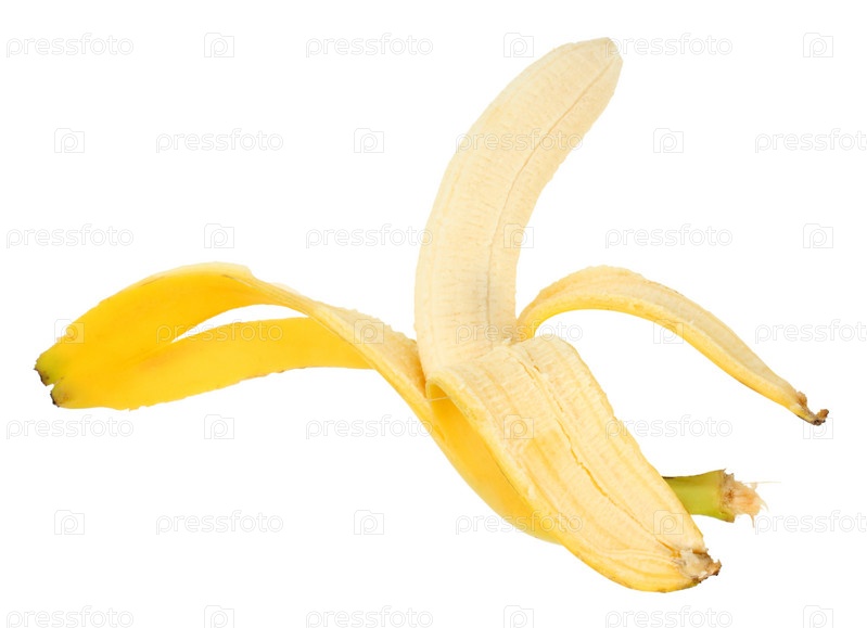 Очищенный банан на белом фоне