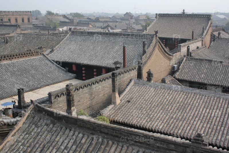 Крыши домов города Пинъяо в Китае