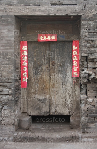Новогодние пожелания на дверях китайского дома
