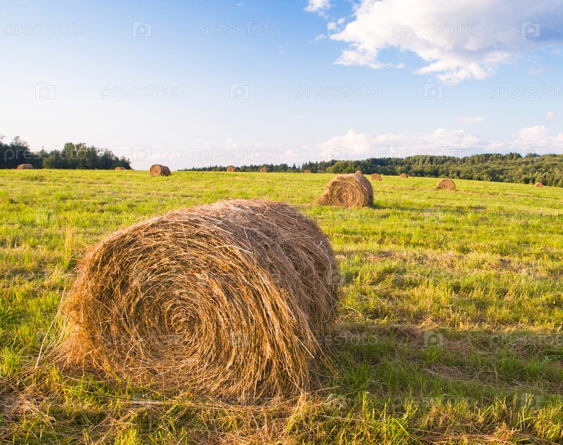 Снопы сена на поле