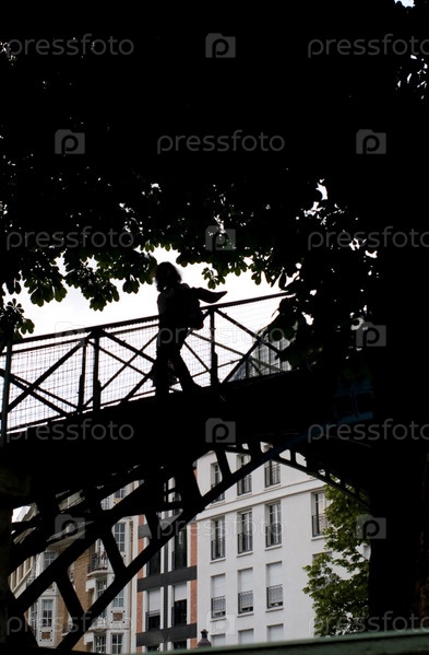 Силуэт на мосту в Париже. Франция