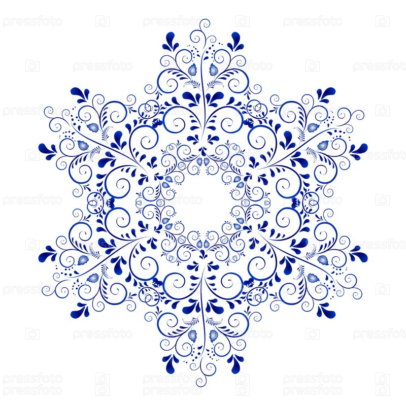 Снежинка в стиле гжель на белом фоне