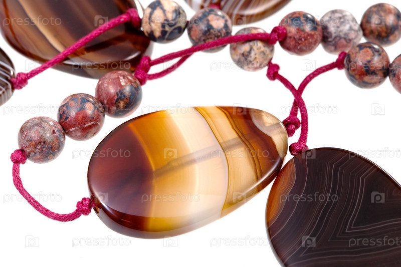 Ожерелье из агата на белом фоне