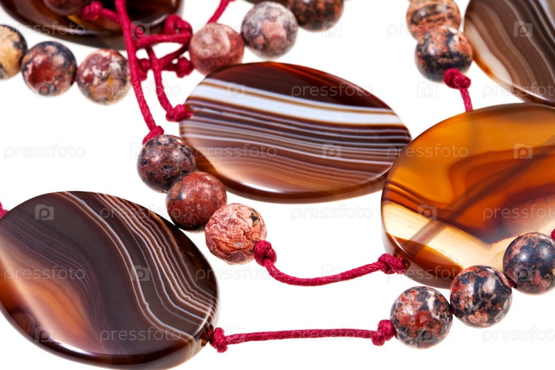 Ожерелье из агата на белом фоне