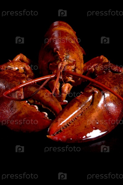 Красного лобстера на черном фоне