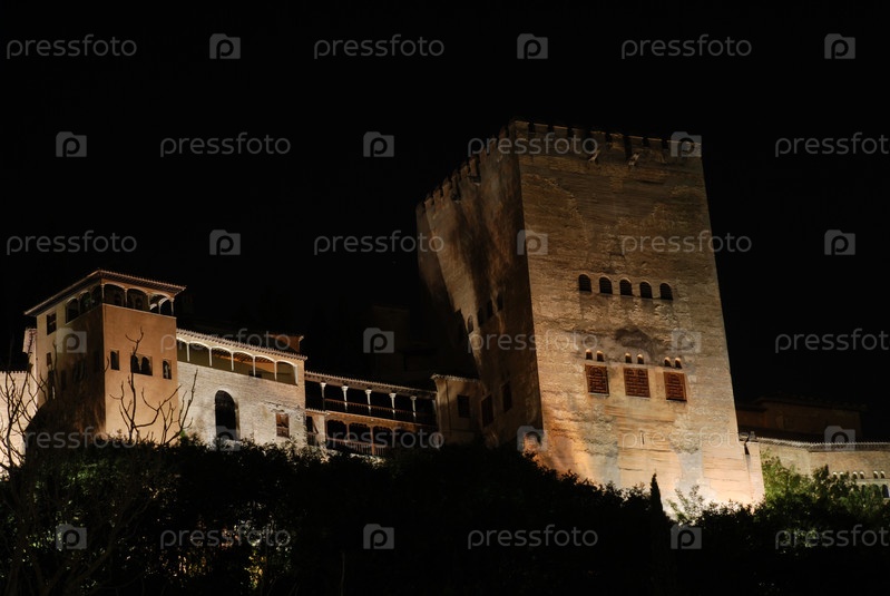 Замок на вершине холма в Альгамбра в Гранаде, Андалусия, Испания,