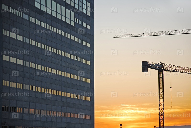 Granada Caja, здание на закате в Гранаде, Андалусия, Испания