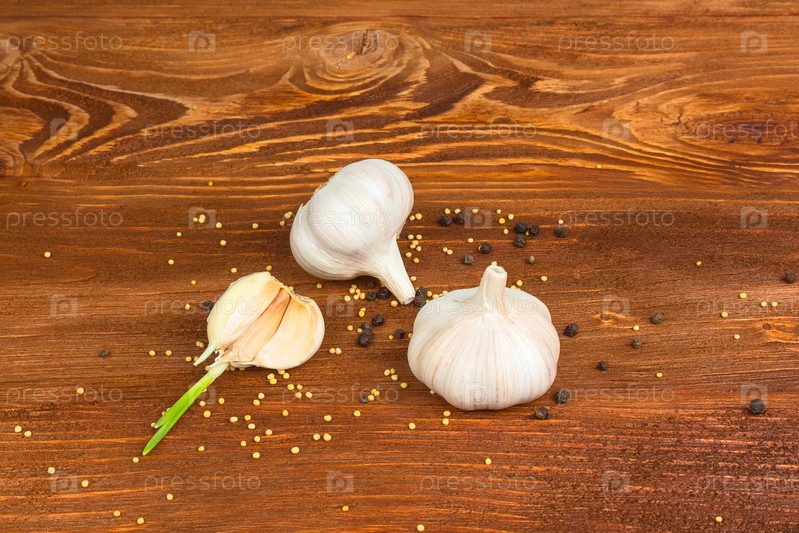 Чеснок на деревянных фоне