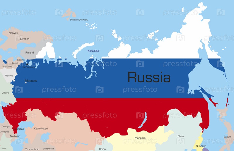 Карта России, раскрашенная в цвета национального флага