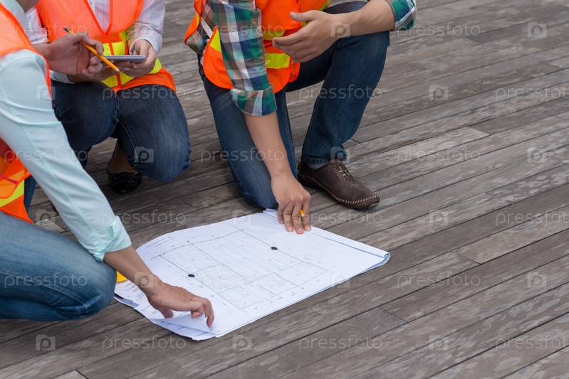 Инженеры обсуждают план здания
