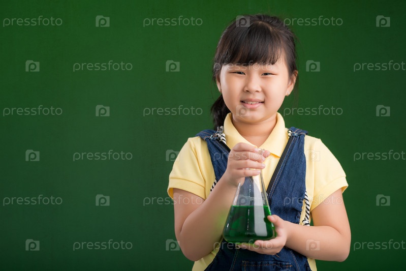 Азиатская школьница с колбой