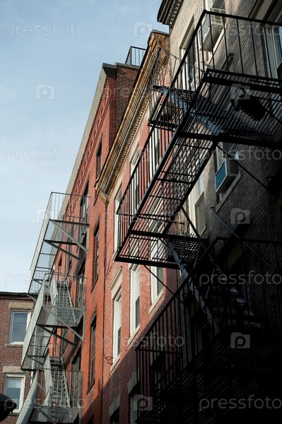 Огонь побег на внешний вид здания, Бостон, Массачусетс, США