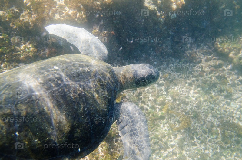Морская черепаха, плавание под водой, бухта Тежу, острове Изабела, Галапагосские острова, Эквадор