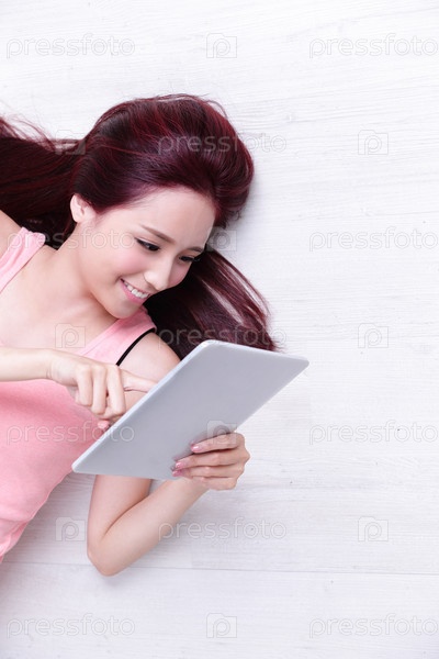 Милая девушка с планшетом