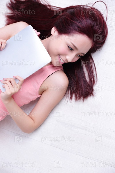 Милая девушка с планшетом