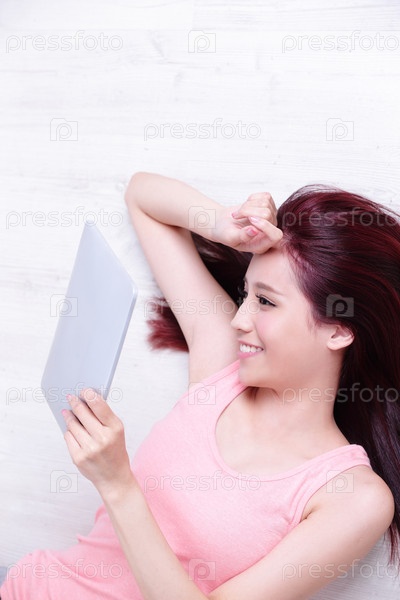Милая девушка с планшетом