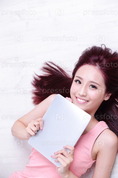 Милая девушка с планшетом