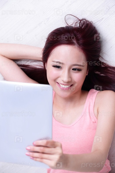 Милая девушка с планшетом