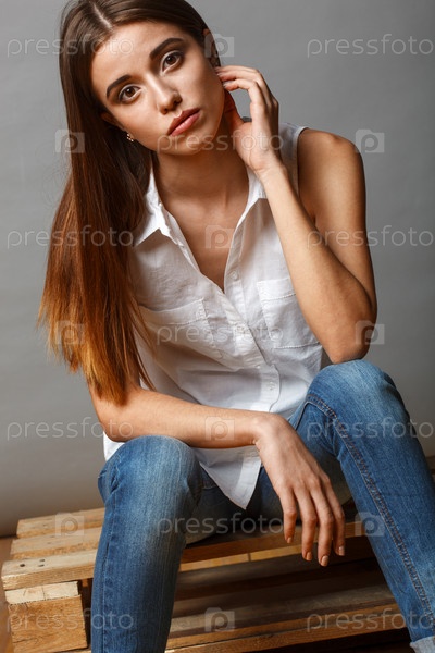 Модель позирует в студии