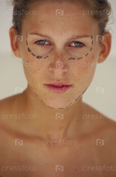 Женщина с маркировкой для косметической хирургии
