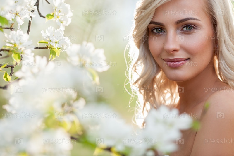 Блондинка в цветущем саду