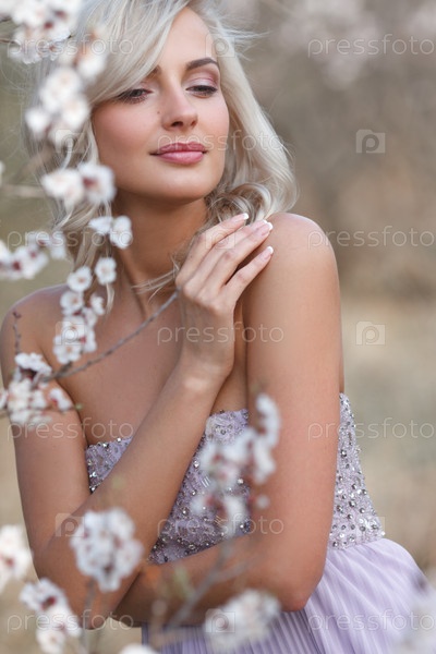 Блондинка в цветущем саду