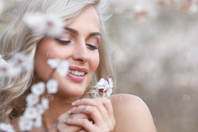 Блондинка в цветущем саду