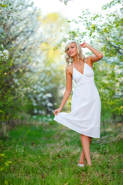 Молодая женщина в саду весной