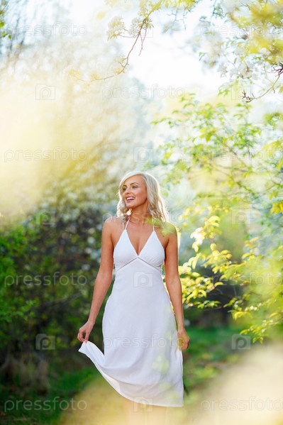 Молодая женщина в саду весной