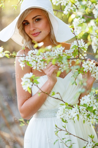 Блондинка в цветущем саду