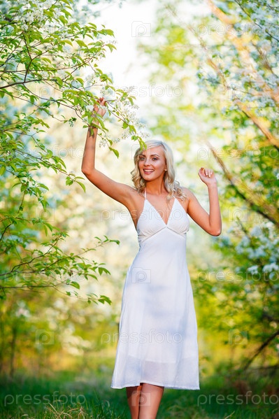 Молодая женщина в саду весной