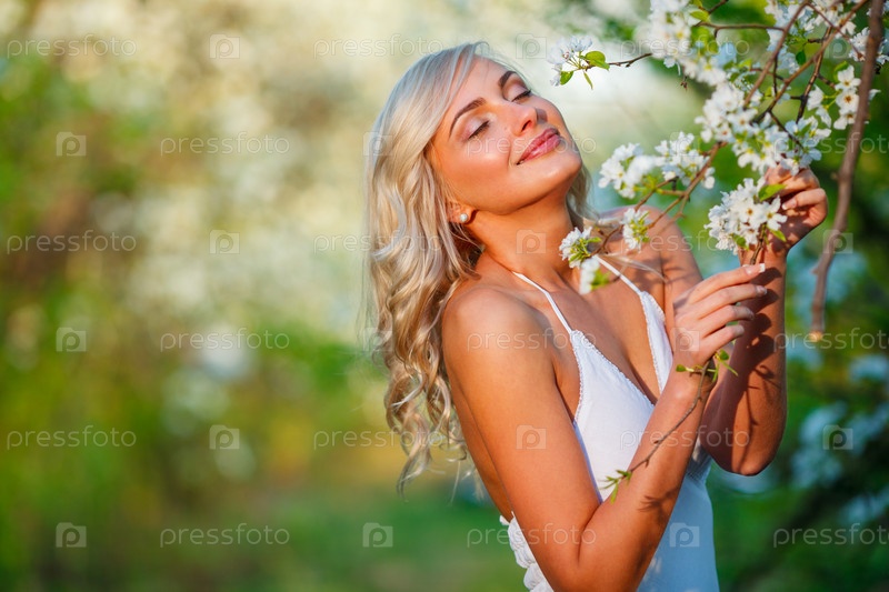 Блондинка в цветущем саду