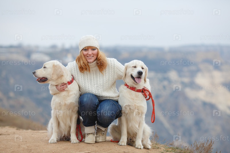 Женщина с собакой на открытом воздухе