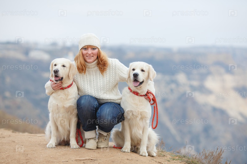 Женщина с собакой на открытом воздухе