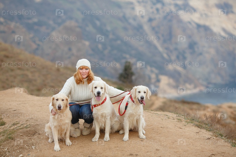 Женщина с собакой на открытом воздухе