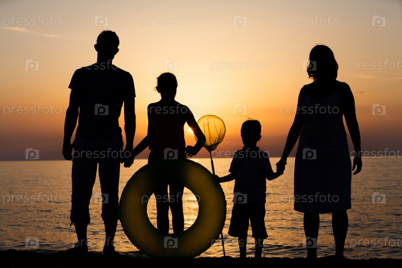Силуэт семьи на пляже